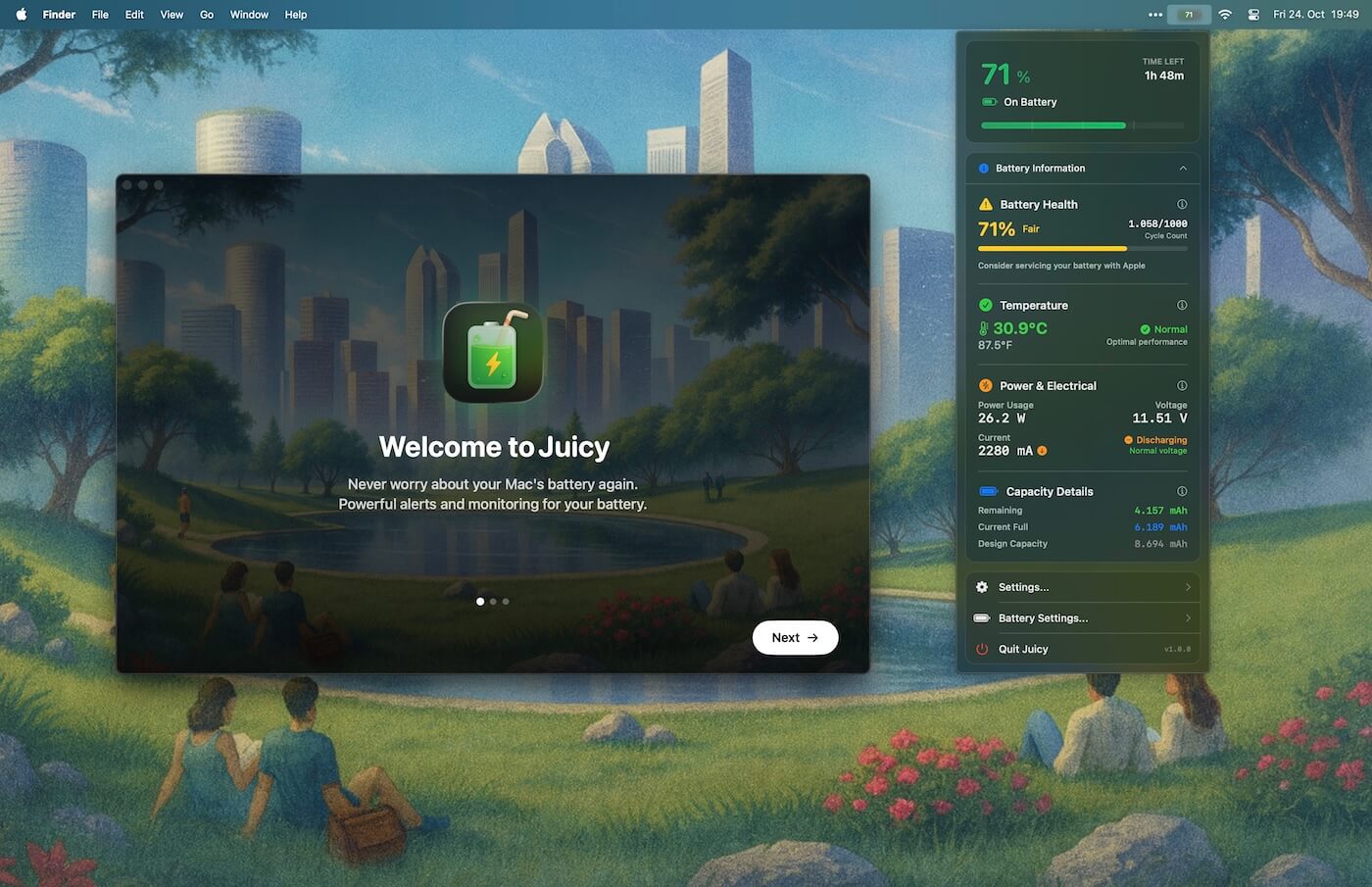 Pay once for Juicy and keep your Mac's battery healthy for years.